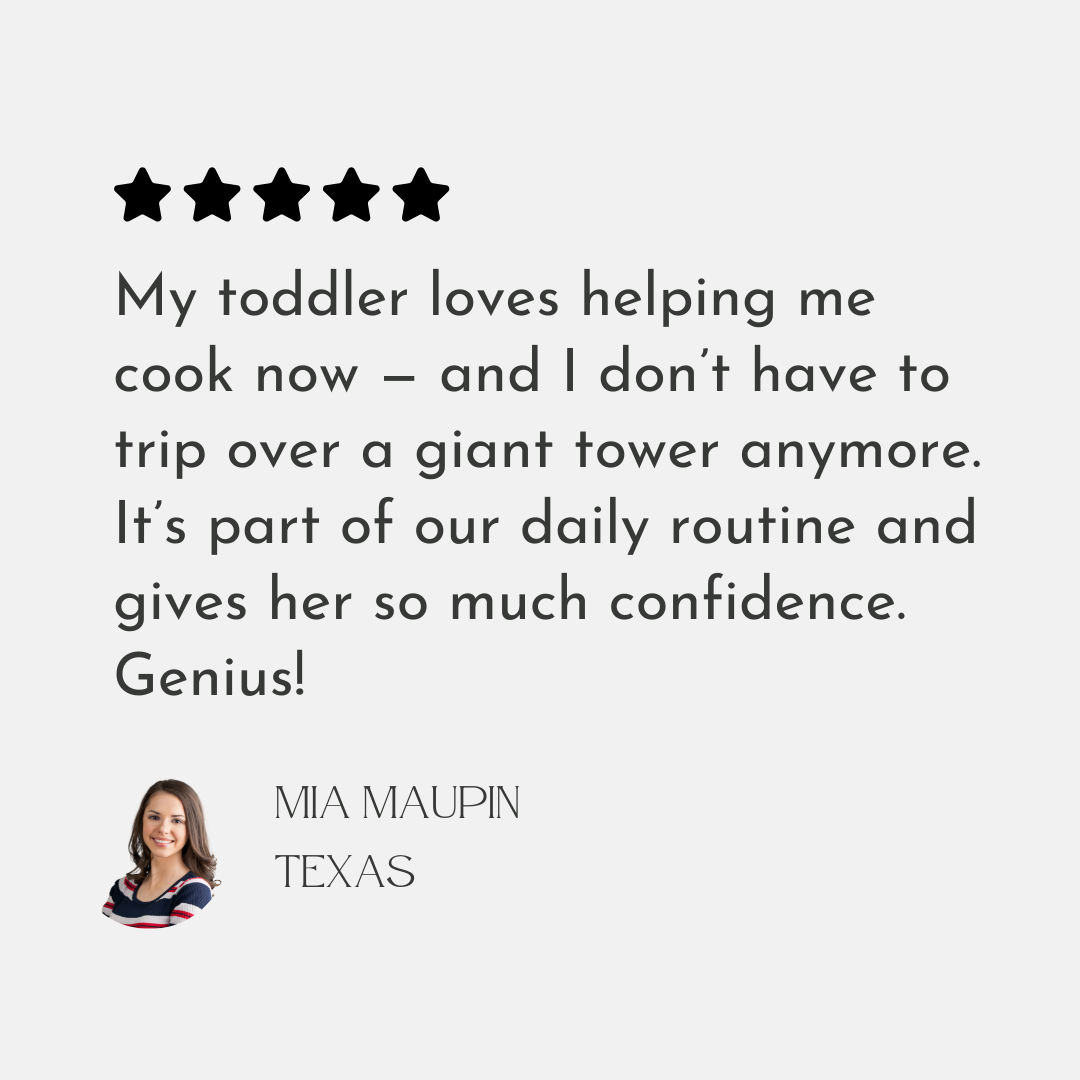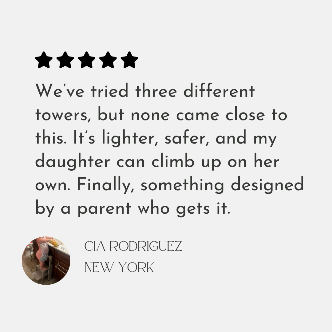 After too many experiences tripping over “easy-assembly” toddler towers, we built the stool we wished existed: one that saves space, installs in minutes, and actually fits your home. Get ready to reclaim your space- without sacrificing the safety of your growing toddler.
