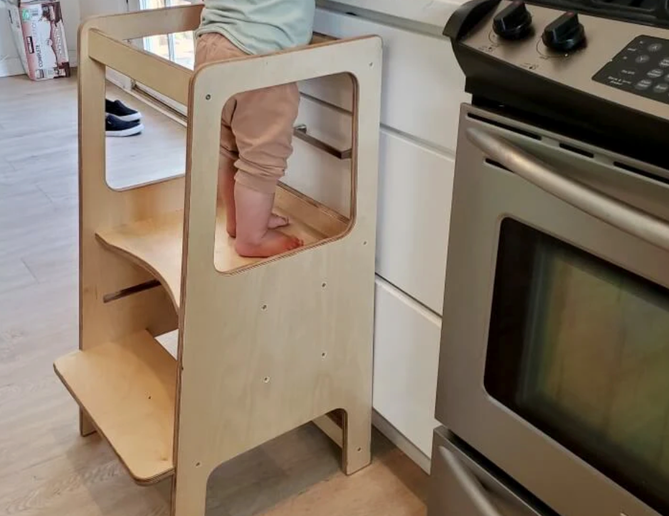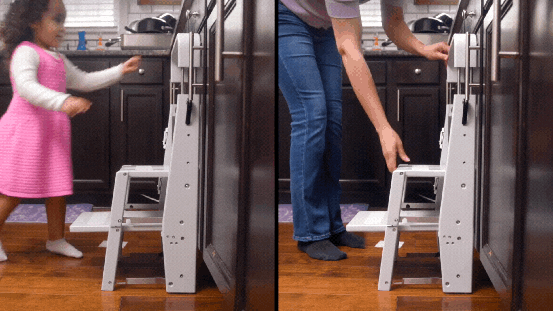 Absolutely. Safety is at the heart of every detail—from the anti-slip step texture to the locking hinge system. Whether your little one is washing hands or helping in the kitchen, every climb feels secure and steady.