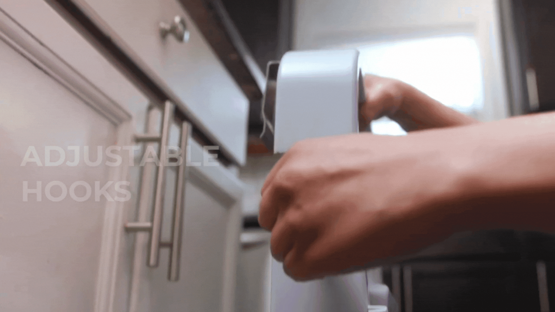 Our patented hooking mechanism locks securely to your cabinet—no slipping, no wobbling, no stress.